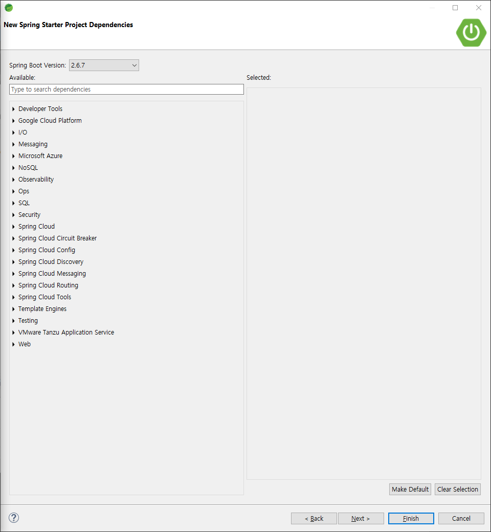 new spring starter project dependencies